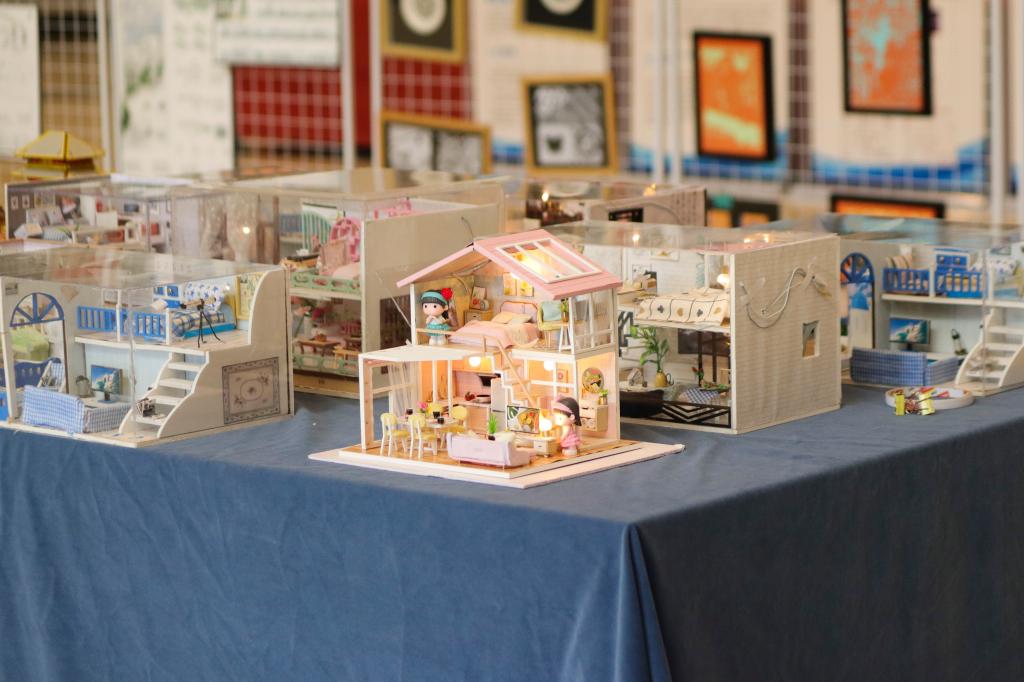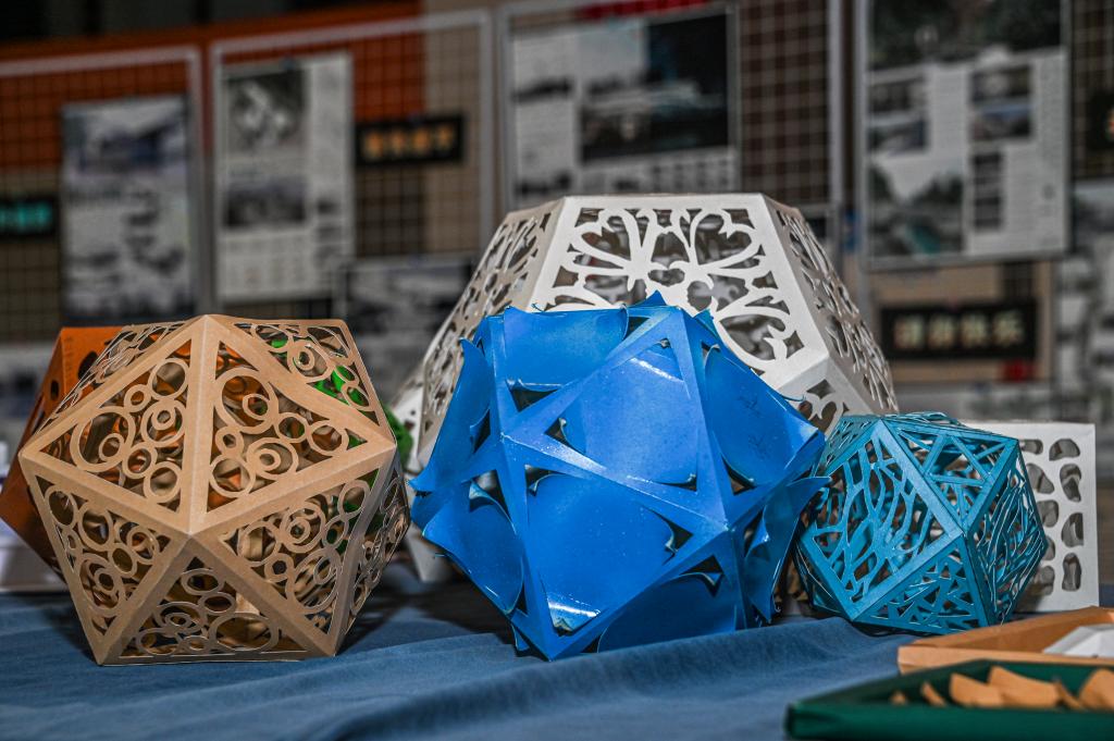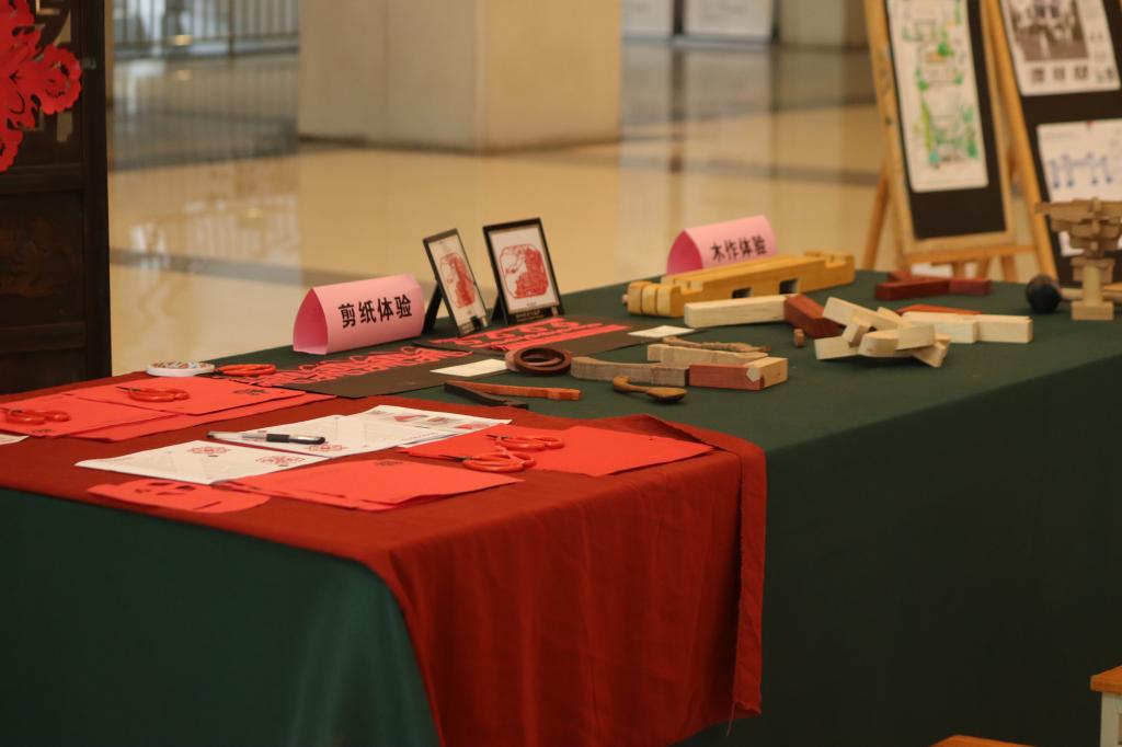 不仅如此,展览还特别设置了木作和剪纸作品展示区,展出了学院文化精品课:“华夏匠心——木艺传承与创新”部分课堂作品,为参观者提供了与艺术互动的机会。参观者可以近距离欣赏到建筑城规学院学生精心制作的木作作品,了解到木作的工艺和知识。同时,他们还可以亲手体验剪纸艺术,感受到剪纸的魅力和独特之处。
