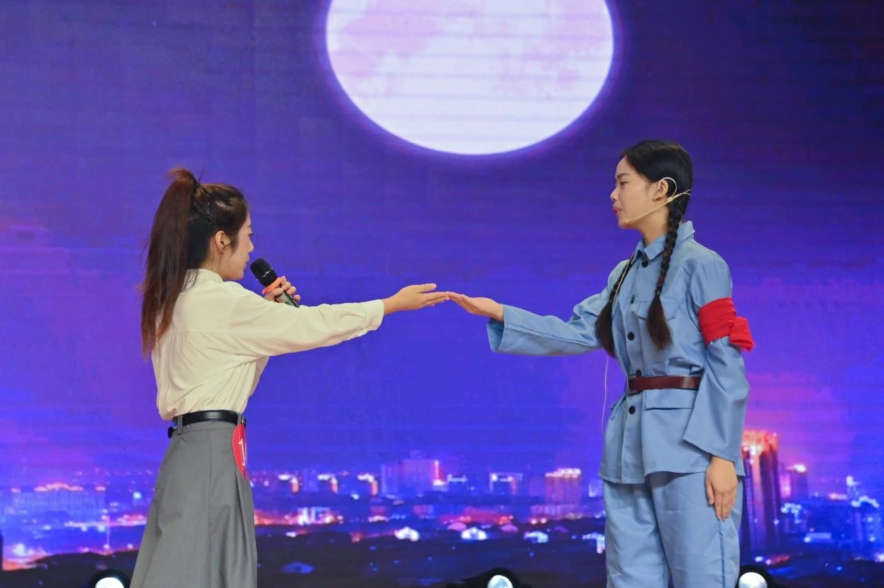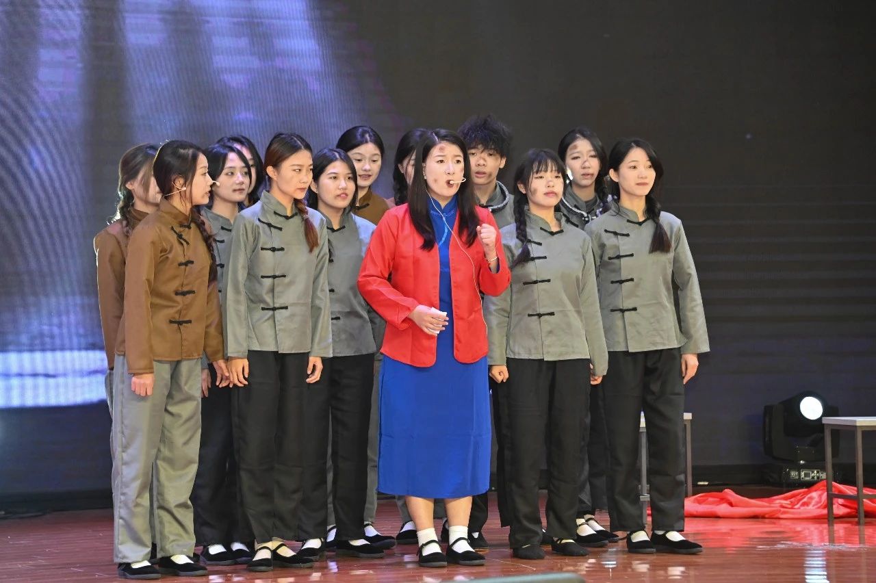 来自重庆科技职业学院的同学们,以《乳娘》为题,带领现场观众重温了“胶东乳娘”的故事。——抗日战争最艰难的时期,八路军主力和党政军机关在突破日寇层层封锁中面临生死考验,被迫频繁转移。为民族大义,有的同志不得不抛下刚入人世的亲生骨肉。1942年7月,中共胶东区党委决定在牟海县(今乳山市)组建胶东育儿所,选取乳娘哺育党政军干部子女和烈士遗孤。此后10多年的时间里,300多名乳娘和保育员养育了1223名革命后代,在日军扫荡和迁徙中,胶东育儿所的乳儿无一伤亡。在血雨腥风的战争年代,乳娘们用大爱书写了一段人间奇迹。