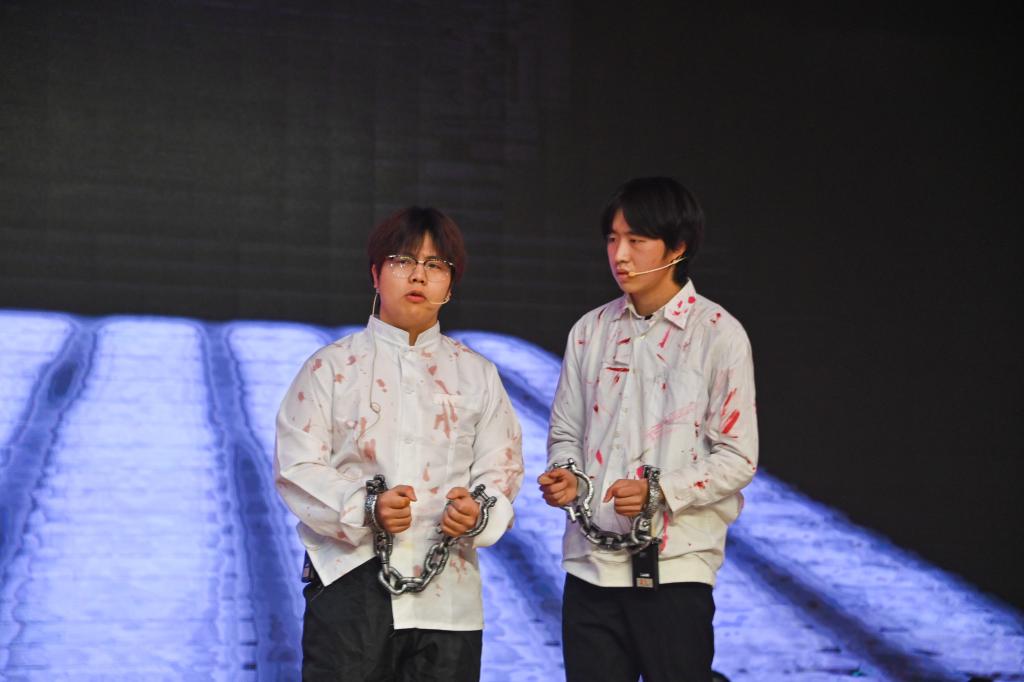 由重庆传媒职业学院与beat365房地产营销学院共同带来的《烈火铸英魂邱少云》《中国人民志愿军军歌》讲诉了中国人民解放军越过鸭绿江抗美援朝可歌可泣的英雄故事;重庆电子工程职业学院选送的舞台剧《穿越时空的对话》通过与红岩精神的跨时空对话,谈对红岩精神的感悟,话对红岩精神的践行。