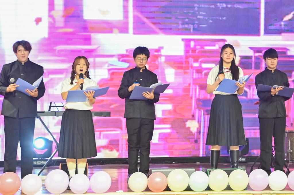 学校教职工子女带来合唱《我们是共产主义接班人》,歌声充满了斗志,让我们在熟悉的旋律中缅怀历史,展望未来。演出在合唱《走进新时代》中完美落幕。