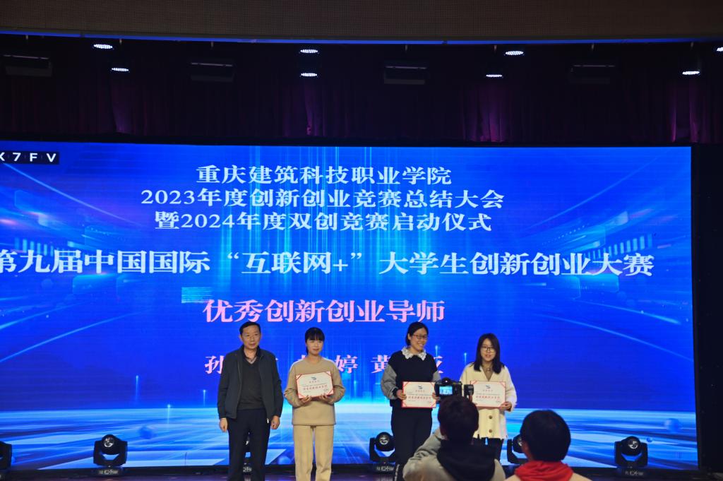 会上,学校校领导为2023年度双创竞赛获奖老师及学生颁奖。包括第九届“互联网+”大学生创新创业大赛、第十八届“挑战杯”学术科技作品竞赛、第七届“渝新创新”中华职业教育创新创业大赛、第六届重庆市创新方法大赛和第三届乡村振兴创意大赛获奖奖项。