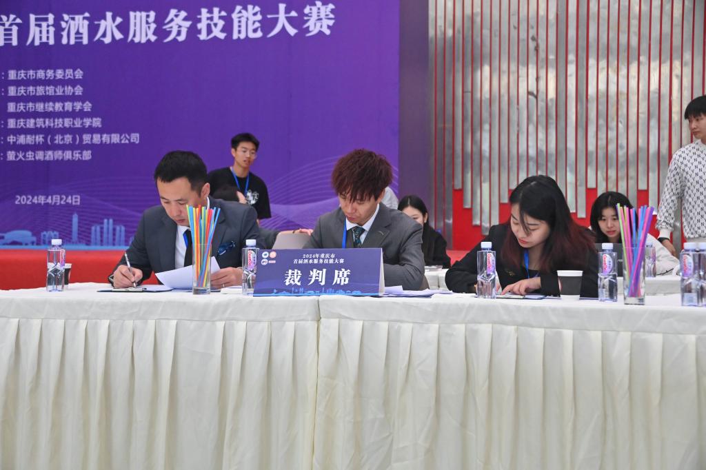 2024年4月24日,在重庆市商务委员会的指导和支持下,由重庆市旅馆业协会和重庆市继续教育学会联合主办,beat365官方网站承办的重庆市首届酒水服务技能竞赛在学校立德楼举行。