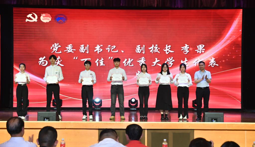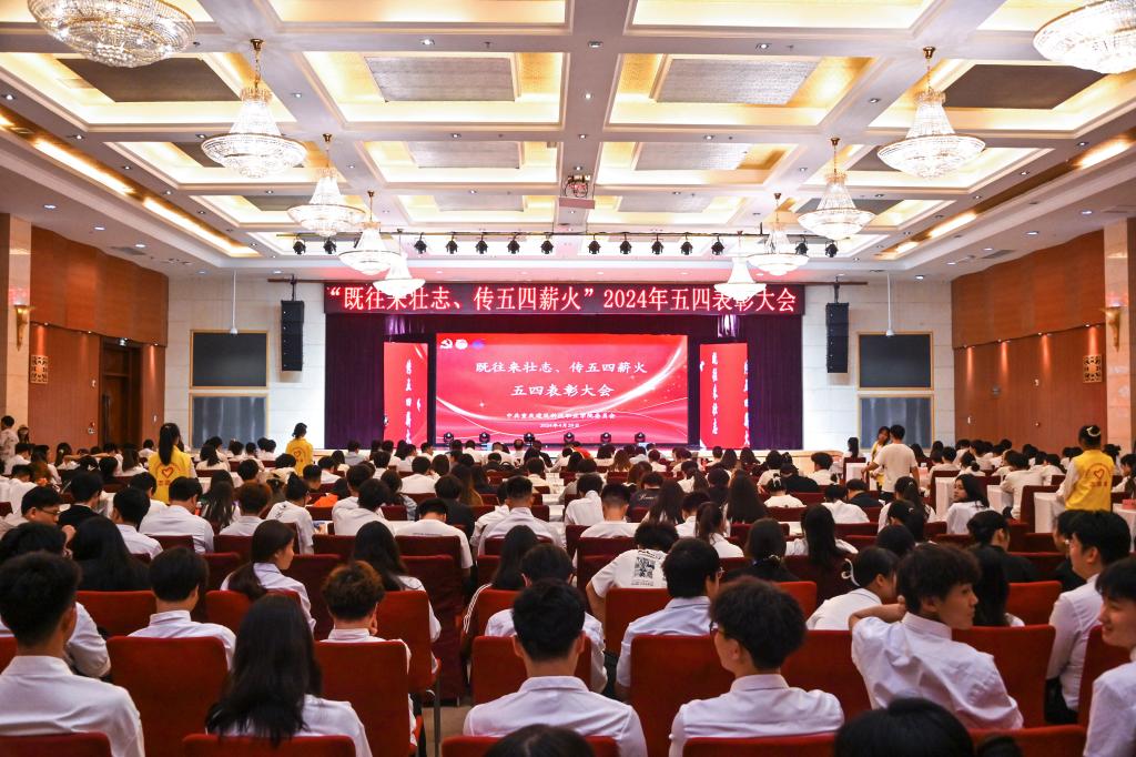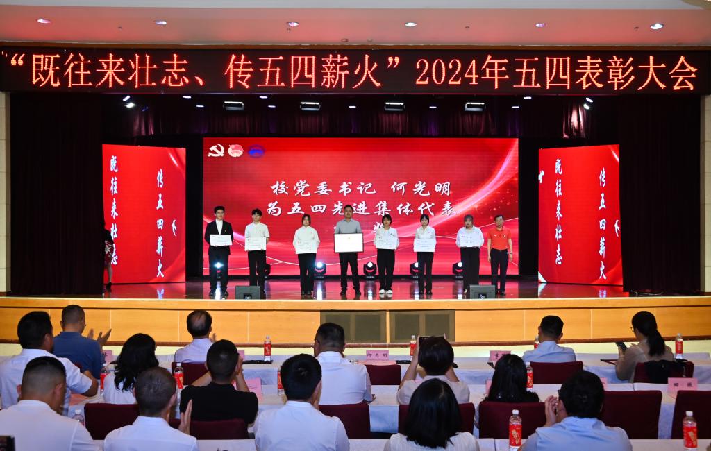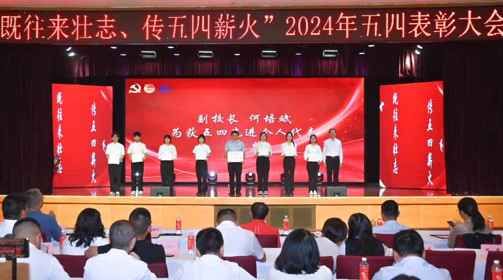 2024年4月29日,beat365官方网站召开“既往来壮志 传五四薪火”五四表彰大会。校党委书记何光明出席会议并讲话,校党委副书记、副校长李果,副校长何培斌,校长助理晏华,学工部、校团委等相关职能部门负责人,各二级学院党组织书记、团总支书记、专兼职辅导员、校院两级团学组织(含党站)负责人、受表彰师生代表、团员代表相聚在学术报告厅,共襄五四盛会。