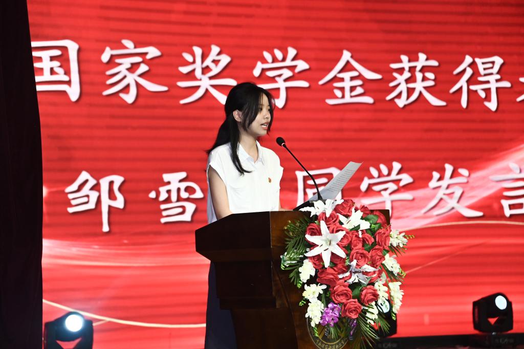 受表彰个人代表国家奖学金获得者邹雪妮发言