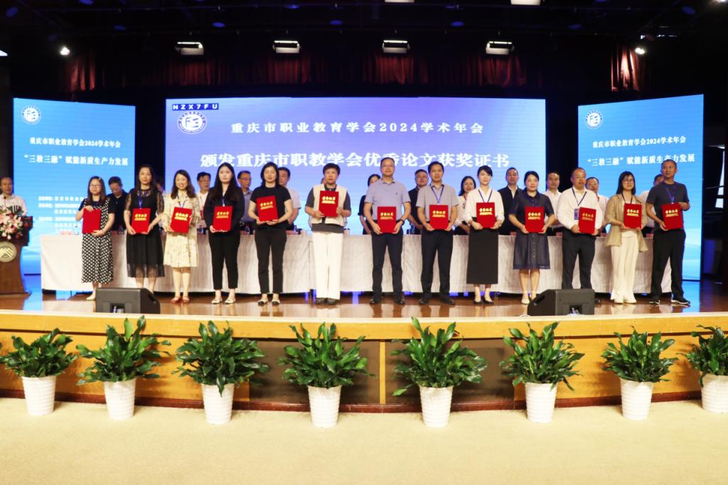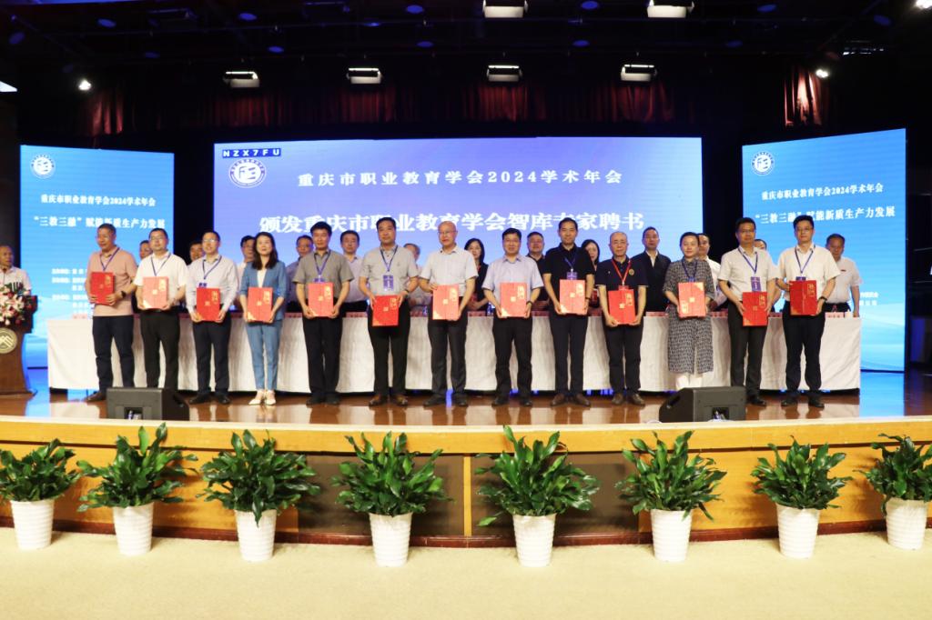 随后,重庆市教委职成教处处长吴岚宣读了重庆市职教学会第二批智库专家和优秀论文获奖名单并为代表颁发聘书和获奖证书。