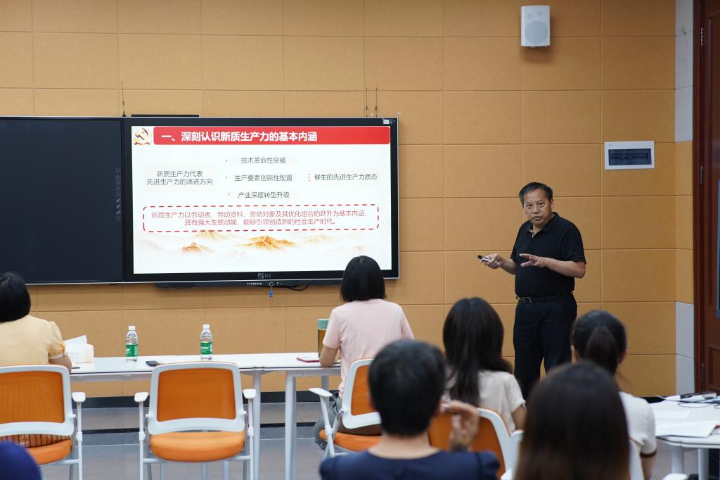 课堂上,刘校长首先阐述了新质生产力的概念。他指出,新质生产力是指以新技术、新经济、新业态为主要内涵的生产力,它代表了生产力发展的新阶段,具有高科技、高效能、高质量的特征。接着,刘校长详细解读了新质生产力的内涵特征,包括创新驱动、绿色发展、数字化转型等方面,并强调了新质生产力在推动经济社会发展中的重要作用。