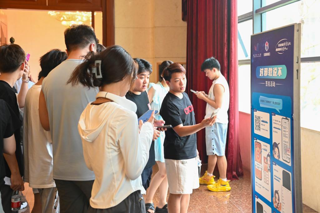此次全国科普日活动联动反邪教宣传月共同举办,在反邪教宣传展区,借助“中国反邪教网”平台,发起“对邪教说不”线上签名活动,现场人员纷纷通过扫描二维码热情地参与签名活动,活动增强了公众对邪教的抵御能力,营造了全社会共同抵制邪教的良好氛围。