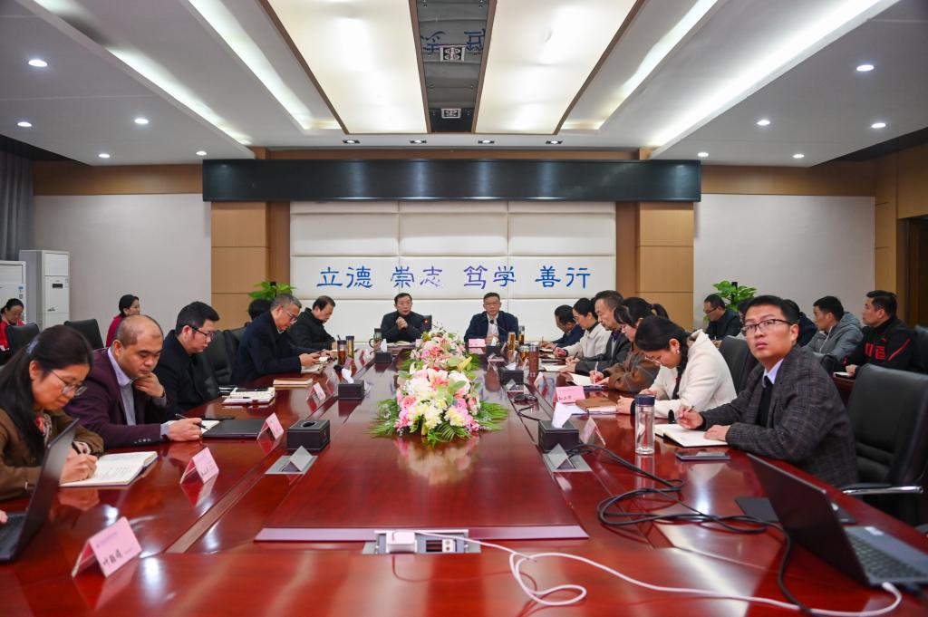 11月21日上午,学校在立德楼六楼会议室举行党委中心组2024年第十一次学习(扩大)会,组织专题学习全市教育大会精神,全体校领导、党委委员、处级干部参会。会议由党委书记何光明主持。