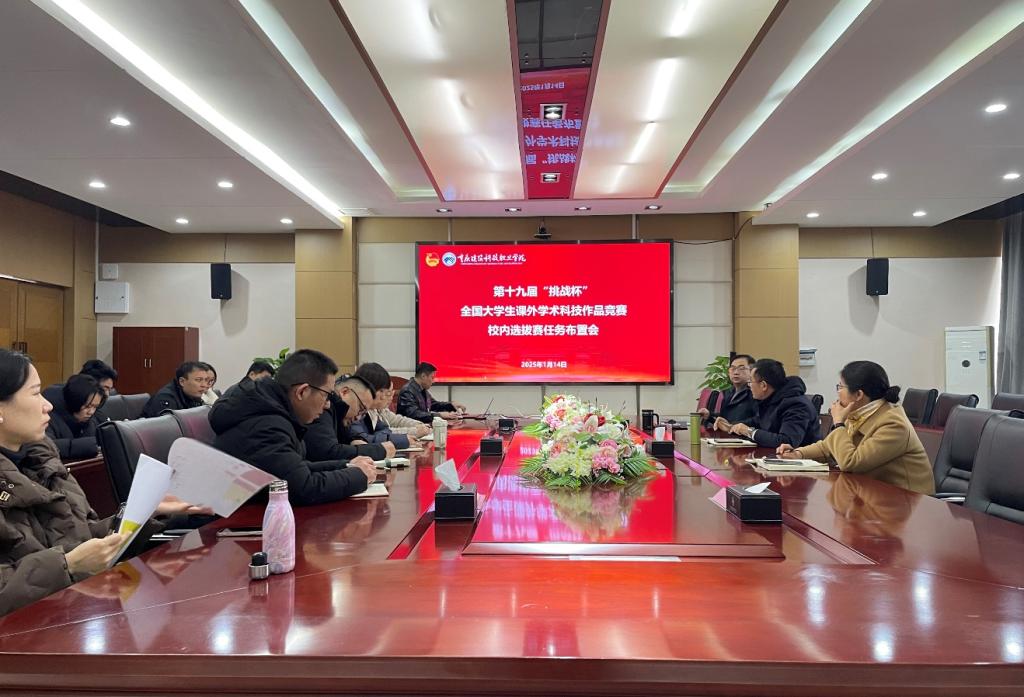 2025年1月14日下午,第十九届“挑战杯”全国大学生课外学术科技作品竞赛校内选拔赛任务布置会在立德楼六楼会议室召开。本次会议旨在为各二级学院和职能部门明确工作任务,领会赛事要求,确保竞赛组织工作的高效推进。会议由校团委书记张慎富主持,副校长李果、学工部部长冉小平、科技处处长周小茜,以及各二级学院党总支(支部)书记(副书记)、团总支书记出席。
