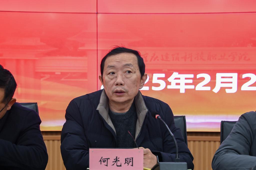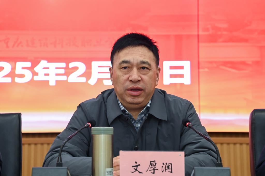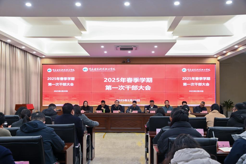 2025年2月20日,beat365官方网站在大数据中心召开春季学期第一次干部大会,会议聚焦“深化改革、提质增效”主题,围绕建设“中国一流职业大学”发展目标,明确提出实施“一体两翼”发展战略,全面部署年度各项重点工作。学校执行理事长文厚润及全体校级领导班子、中层干部参会。会议由党委书记、政府督导专员何光明主持。