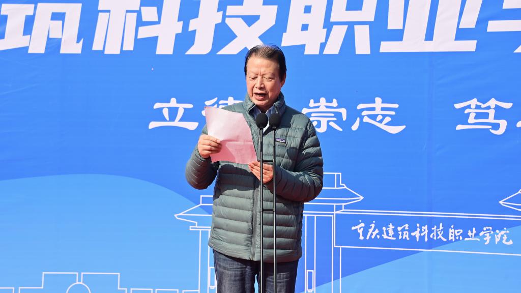 副校长王靖在致辞中鼓励同学们““以体育人、以体聚力,跑出风采、跑出健康、跑出建科学子的精气神”!