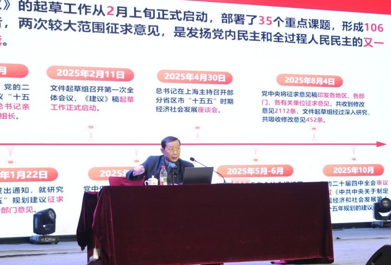 宣讲中,何书记首先阐释了全会的重大历史意义、基本情况及《中共中央关于制定国民经济和社会发展第十五个五年规划的建议》的起草过程与核心要义,详细梳理了“十四五”时期我国取得的“六个最”重大成就,明确了“十五五”时期作为基本实现社会主义现代化夯实基础、全面发力关键时期的战略定位。