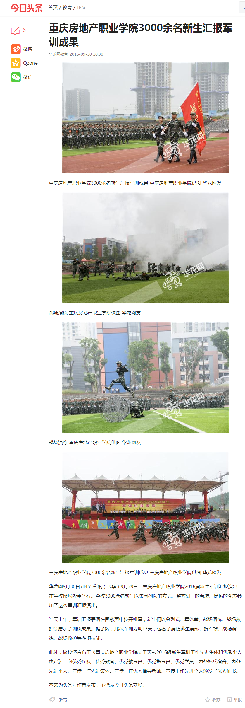 网易新闻、华龙网、今日头条关注beat3653000余名新生汇报军训成果