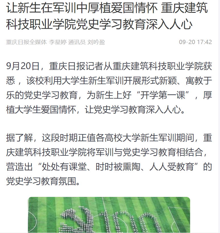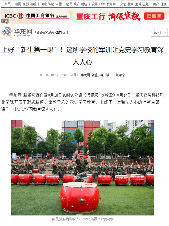 重庆日报、华龙网等媒体报道beat365军训让党史学习教育深入人心