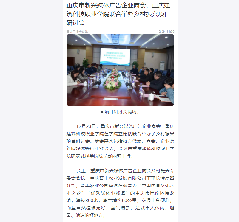 重庆日报等媒体报道beat365与重庆市新兴媒体广告企业商会联合举办乡村振兴项目研讨会