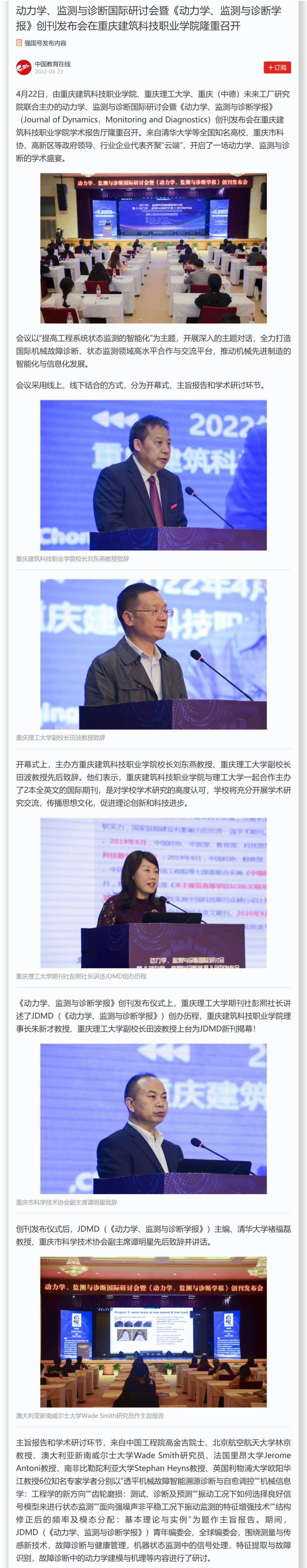 中国教育在线报道beat365动力学、监测与诊断国际研讨会暨《动力学、监测与诊断学报》创刊发布会隆重召开