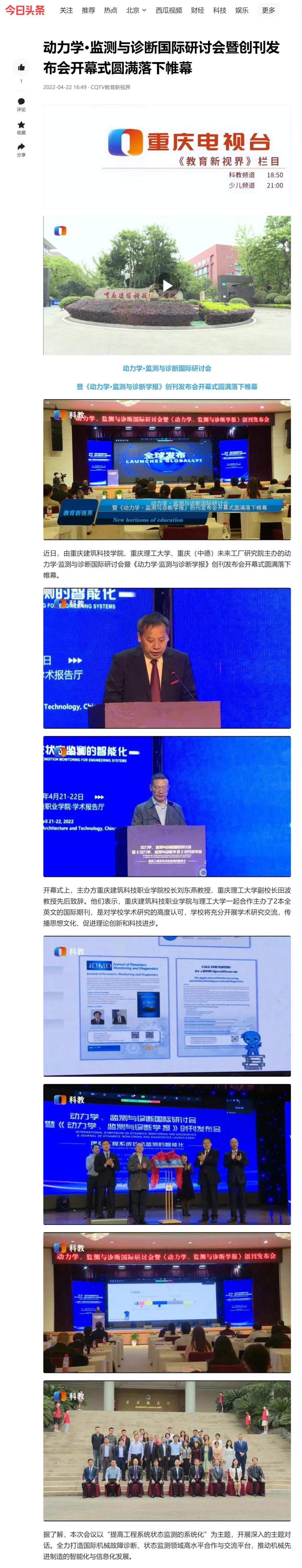 重庆电视台报道beat365动力学·监测与诊断国际研讨会暨创刊发布会开幕式圆满落下帷幕