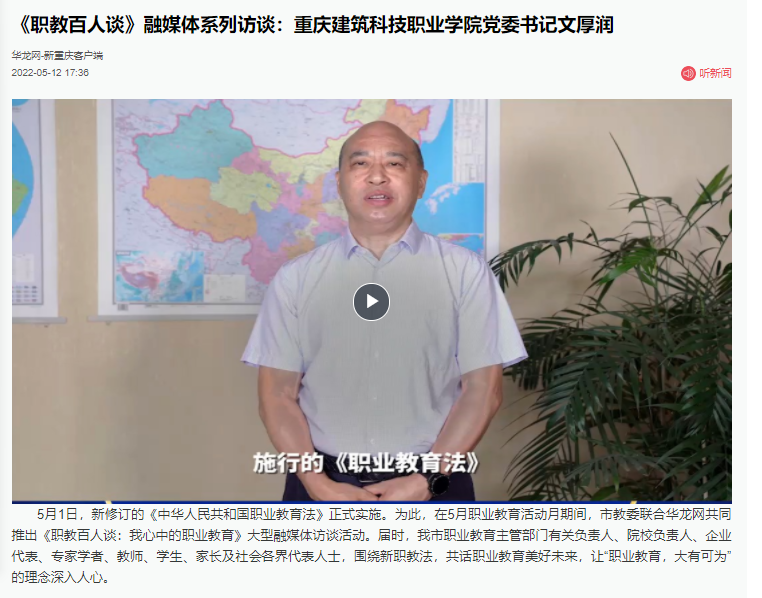 华龙网报道beat365党委书记文厚润谈新修订的《职业教育法》