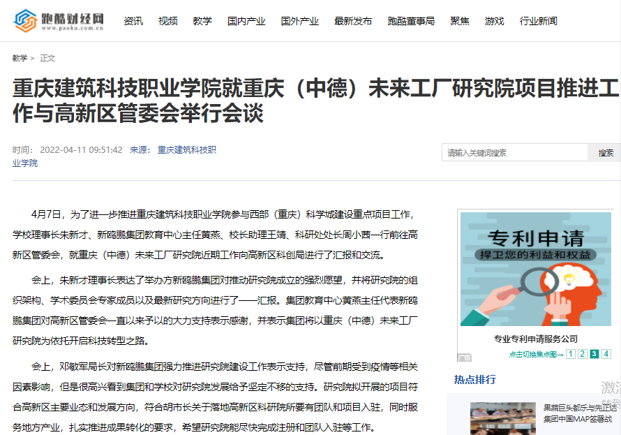 跑酷财经网报道beat365就重庆(中德)未来工厂研究院项目推进工作与高新区管委会举行会谈