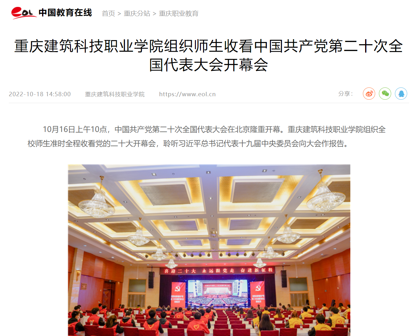 【中国教育在线】beat365官方网站组织师生收看中国共产党第二十次全国代表大会开幕会