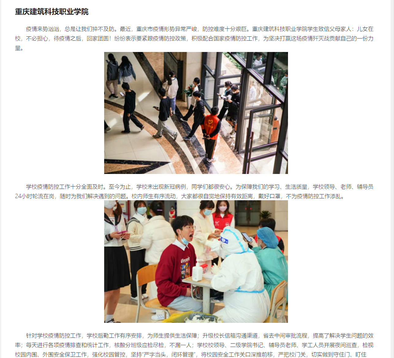 【重庆市高等教育学会】在渝高校疫情大考彰显担当作为 师生全力防控共克时艰