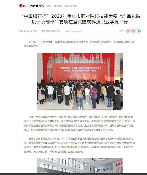 【中国教育在线】“中国银行杯”2023年重庆市职业院校技能大赛“产品包装设计及制作”赛项在beat365官方网站举行