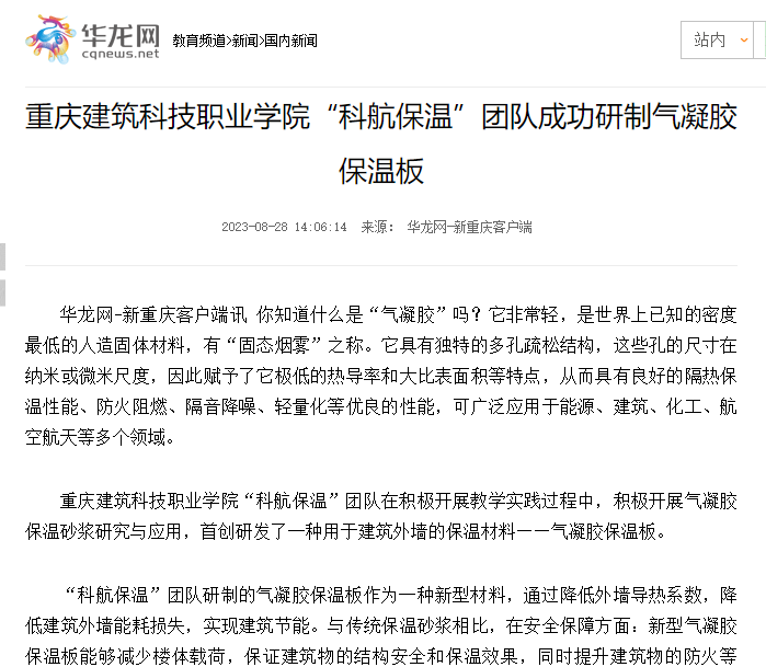 【华龙网】beat365官方网站“科航保温”团队成功研制气凝胶保温板