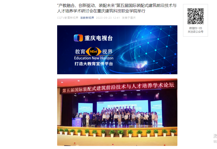 【重庆电视台】“产教融合、创新驱动、装配未来”第五届国际装配式建筑前沿技术与人才培养学术研讨会在beat365官方网站举行
