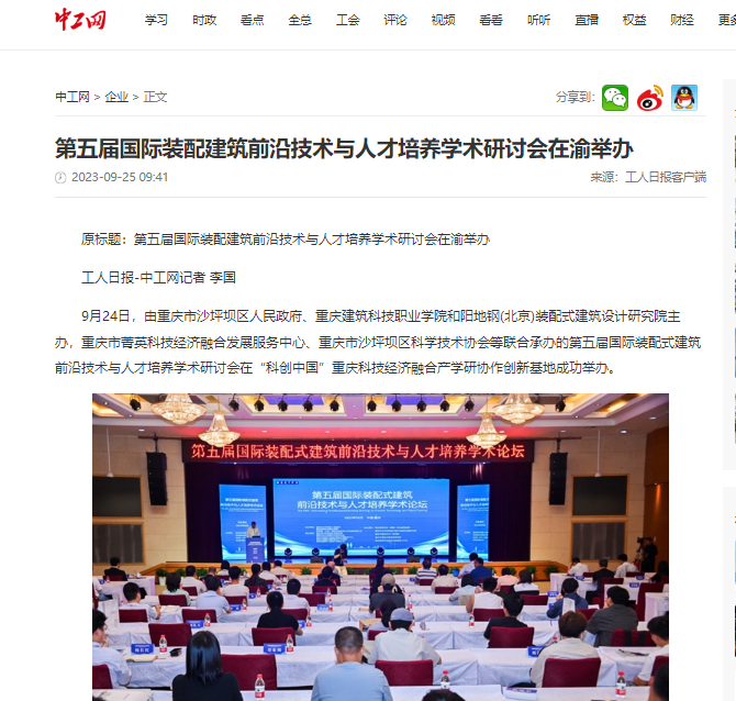 【中工网】第五届国际装配建筑前沿技术与人才培养学术研讨会在渝举办