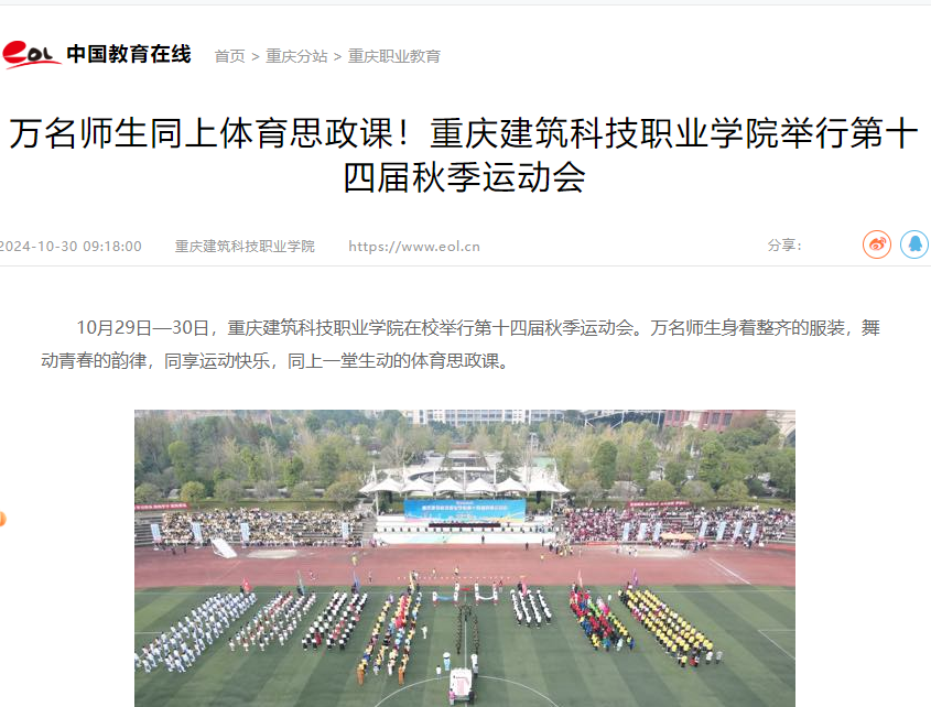 【中国教育在线】万名师生同上体育思政课!beat365官方网站举行第十四届秋季运动会