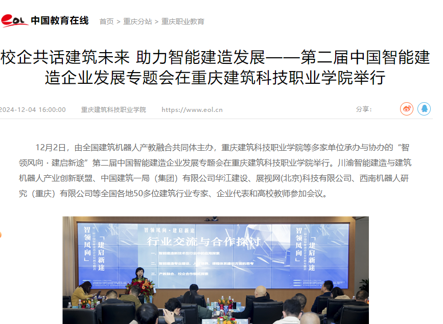 【中国教育在线】校企共话建筑未来 助力智能建造发展——第二届中国智能建造企业发展专题会在beat365官方网站举行