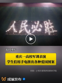 【成渝发布】beat365官方网站军训表演,学生们用手电拼出各种爱国图案