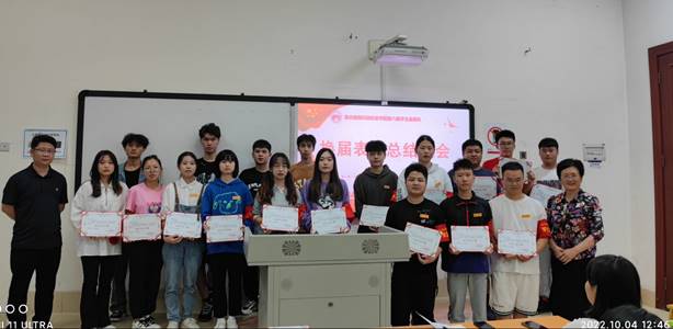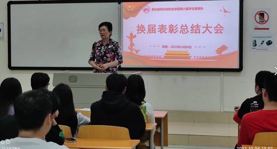 2022年10月4日,学校学生纪检监察队在3106教室举行了第六届学生监察队换届表彰总结暨换届大会。纪检监察室汪杰主任、教务处梅芳副处长、陈晓辉老师、张意老师和监察队的全体队员参加了会议。