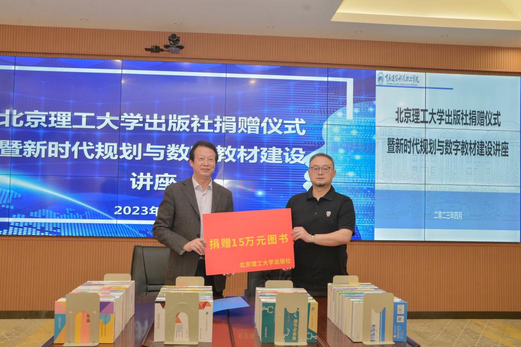 4月26日下午,北京理工大学出版社教材捐赠仪式暨新时代规划与数字教材建设讲座在学校立德大数据中心举行。
