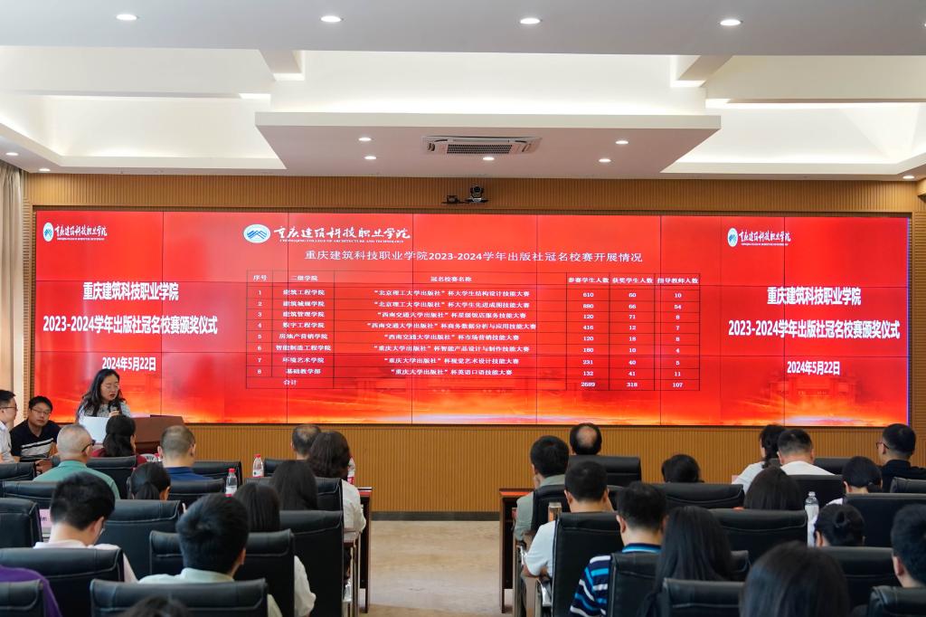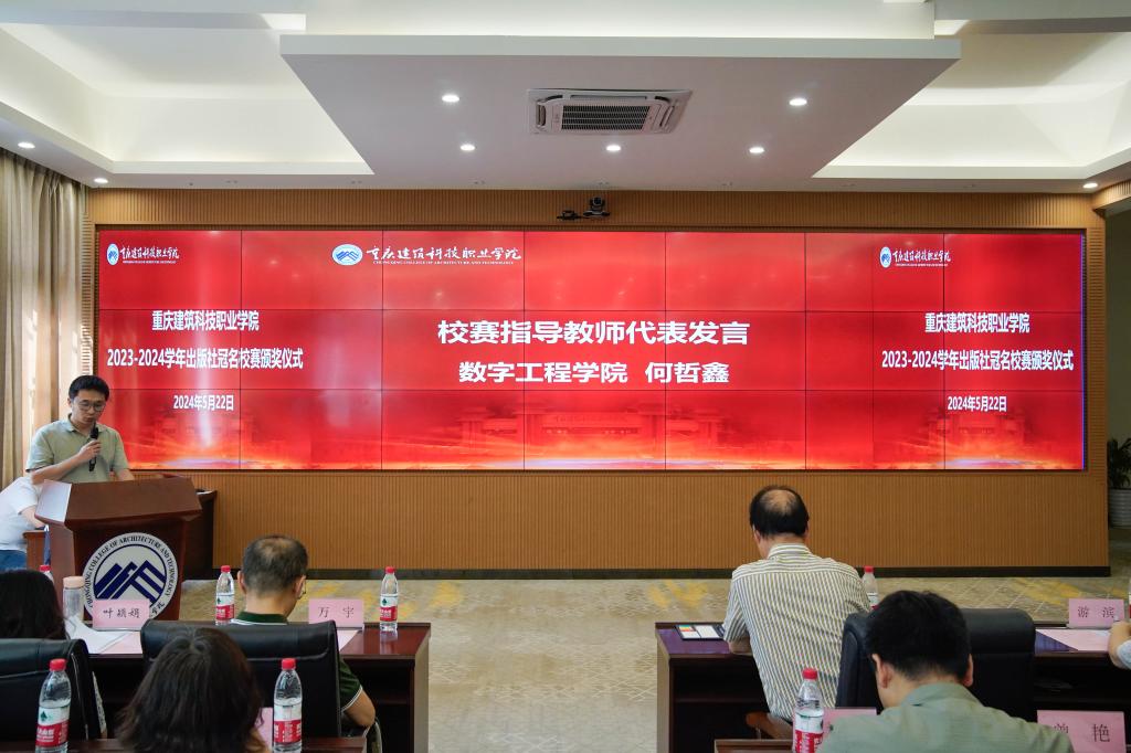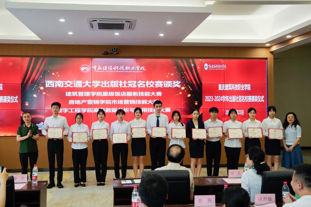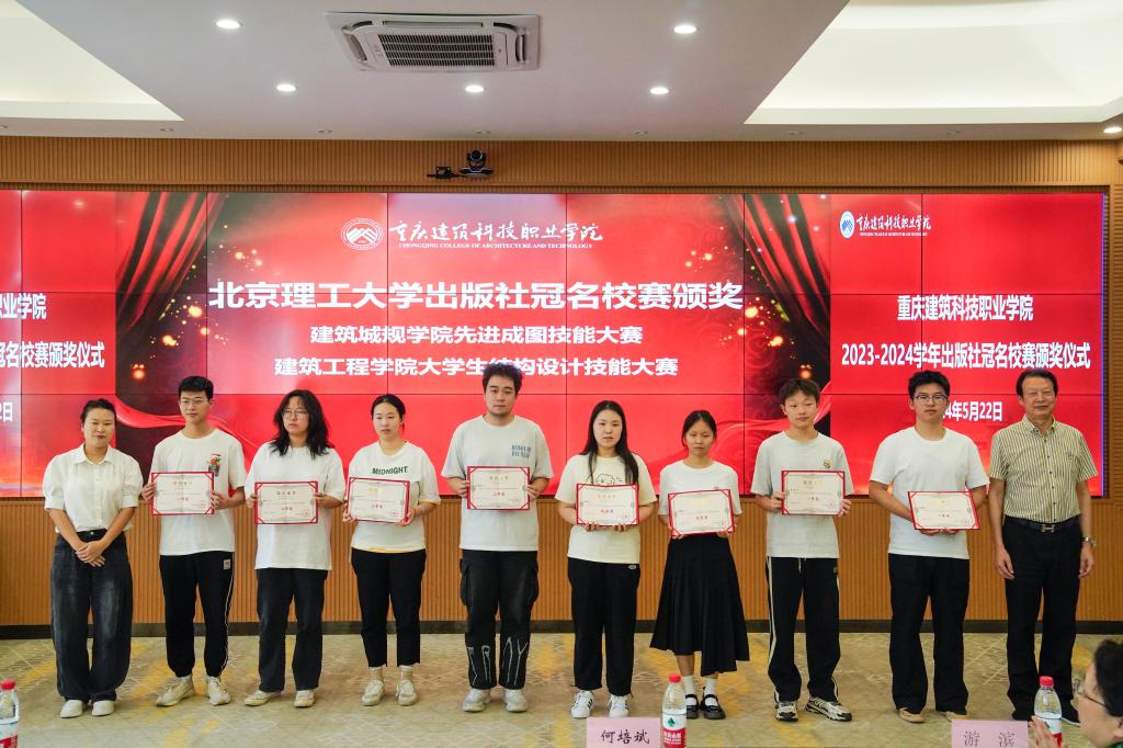 5月22日下午,beat365官方网站2023-2024学年出版社冠名校赛颁奖仪式在学校大数据中心会议室举行。西南交通大学出版社、重庆大学出版社和北京理工大学出版社西南分社嘉宾代表出席会议,学校副校长何培斌、教务处处长叶颖娟、各二级学院(基础教学部)领导、技能竞赛指导教师代表和参赛学生代表参加会议。会议由教务处贾文杰副处长主持。