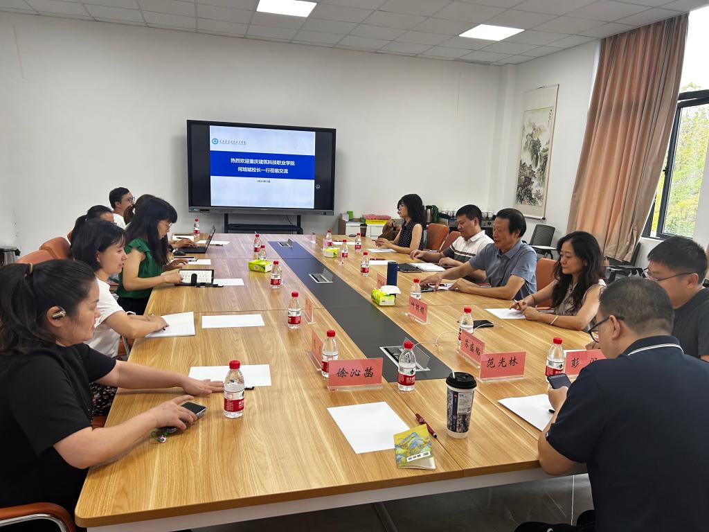 交流活动在重庆建筑工程职业学院建业楼202会议室举行,会上学习了《重庆市职业教育数字教材建设实施方案(试行)》,三方就如何开展数字教材建设、推动教材创新、提升教材质量等进行了讨论。