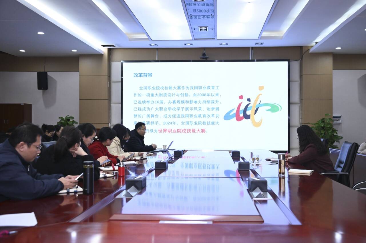 随后,王靖副校长就本年度备赛工作提出三点希望与建议:一是希望指导教师团队深化协作,精研赛制,精心设计参赛方案,并在训练中给予学生充分的人文关怀,促进学生全面发展;二是希望各二级学院加强统筹,整合资源,全力保障每个赛项都能突破重围,打造学院特色与专业品牌,于变局中开创高质量发展新局;三是要求相关职能处室充分发挥指挥与保障作用,全心全意服务备赛,全力协调解决各类困难。