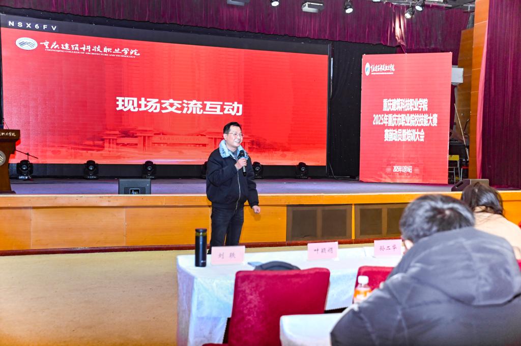 12月16日,学校在学术报告厅召开2025年重庆市职业院校技能大赛赛前动员暨培训大会。副校长王靖出席会议并作动员讲话,各二级学院领导、全体参赛指导教师及学生参会。会议由教务处处长叶颖娟主持。