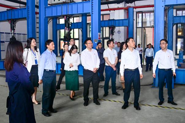 学校校长朱新才、副校长李果带领市(区)领导一行,先后考察参观beat365的建筑声学实训室、地震体验实训室、装配式建筑部品部件生产线等实习实训中心。市(区)领导一行对beat365实训中心的硬件设施配备、学校教学环境等给予了高度评价。