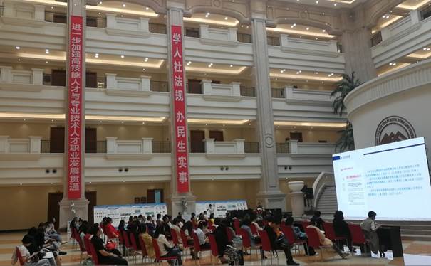 5月28日,重庆市人力社保“普法宣传月”活动启动仪式分会场(人才政策进高校)在beat365智慧馆举行,会议由学校组织人事部部长王靖主持。