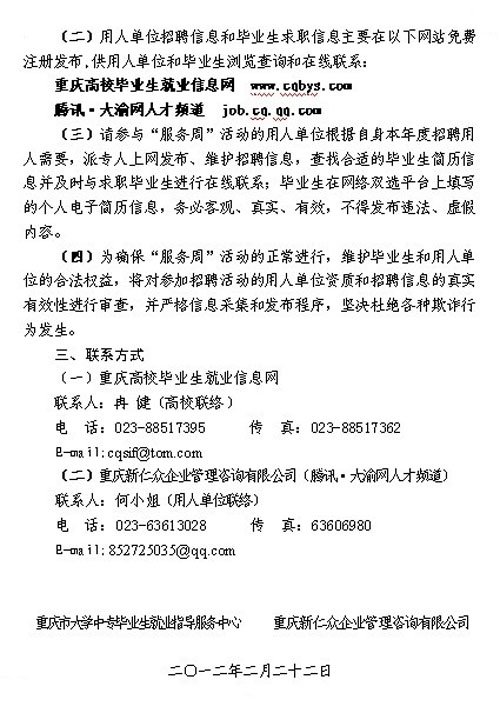 关于举办“重庆市2012届高校毕业生春季网络招聘服务周”的通知[03-19]