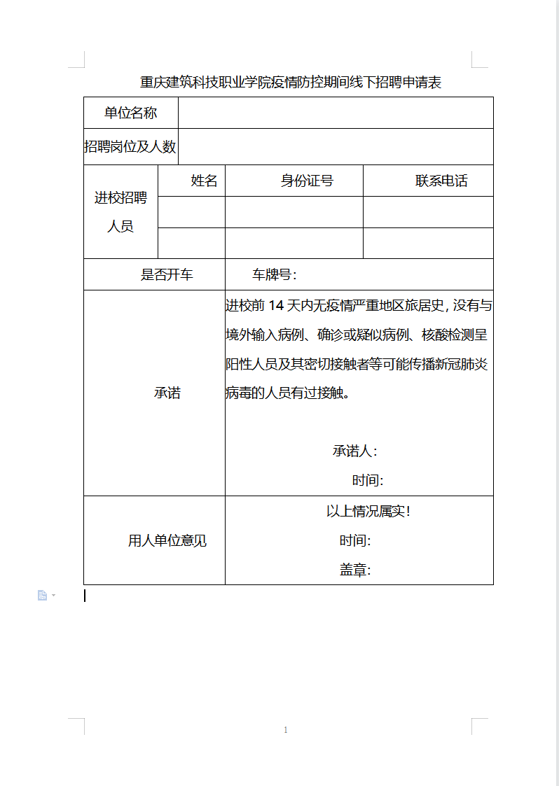 模板-beat365官方网站疫情防控期间线下招聘申请表