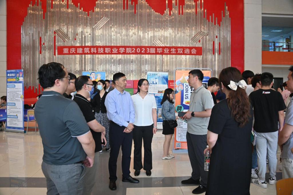 重庆市大中专毕业生就业指导服务中心信息与市场部尹亮部长莅临活动现场指导工作,学校党委文厚润书记,校长助理王靖一同到活动现场关心了解学生们的应聘情况。尹亮部长对学校抢抓就业关键期,多措并举促就业的举措表示了肯定。文厚润书记亲切了解了今年到校招聘的企业质量,企业招聘岗位以及企业福利待遇,让学生最大限度的应聘到满意岗位。校长助理王靖与招聘方交流beat365毕业生的质量以及今年在beat365的招聘情况。现场许多企业纷纷感叹beat365官方网站的毕业生质量高,学生在应聘问询时表现得落落大方,回答问题有逻辑有条理,积极推介自我优势。