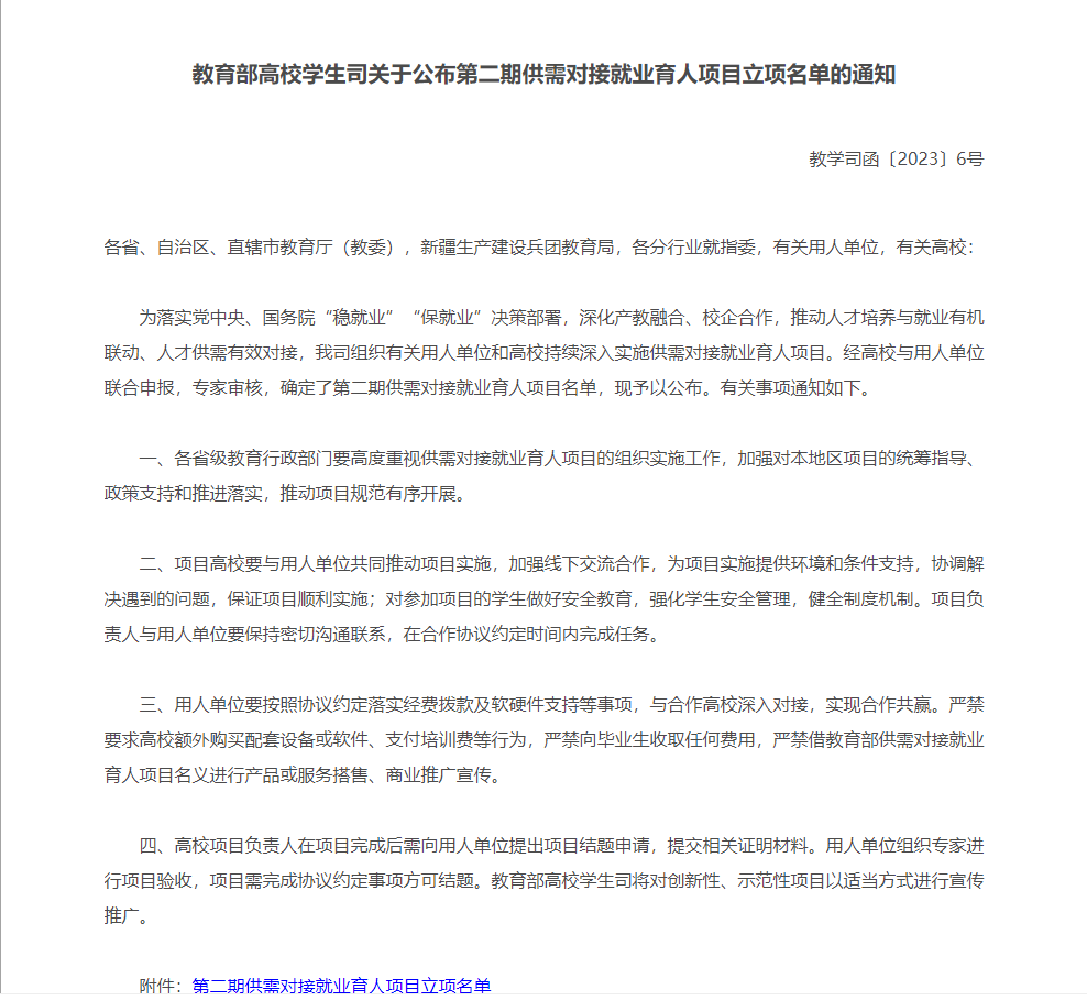 上一篇:“职导未来”系列之“职场新人的四项素质修炼”专家讲座 下一篇:教育部办公厅 商务部办公厅关于举办 电子商务行业面向 2023 届高校 毕业生网上招聘活动的通知