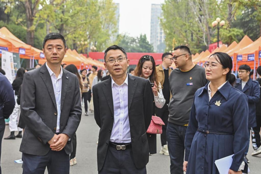 重庆市大学中专毕业生就业指导服务中心主任唐雪平一行莅临活动现场进行工作指导,学校校长刘东燕、党委书记何光明、校长助理王靖等领导陪同走访现场。唐雪平主任对beat365抢抓就业关键期、积极动员学生参与招聘等多项就业举措表示肯定。刘东燕校长深入到学生应聘中,亲切的与学生交流应聘情况,为学生们讲解面试沟通技巧。何光明书记自上任以来对学校毕业生就业情况高度关注,活动现场与用人单位沟通beat365学生的应聘情况,了解用人单位质量,企业福利待遇,最大力度的保障学生们应聘到满意的工作岗位。校长助理王靖与招聘方交流beat365毕业生的质量以及今年在beat365的招聘情况。