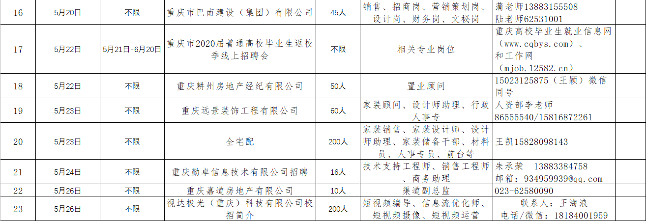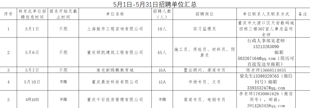 5月1日-5月31日招聘单位汇总