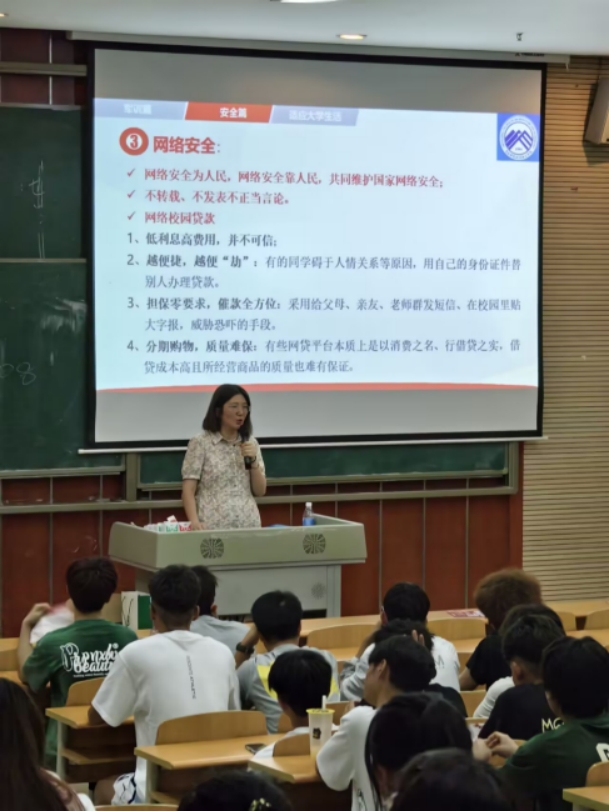 班会课上新生辅导员老师为同学们分析校园内外发生的安全事故,让同学们直观感受安全问题的严重性和防范的必要性。然后讲解了:人身安全介绍校园内常见的安全隐患,如夜间独行、网络交友安全等,提醒同学们提高警惕,避免危险行为财产安全讲解防盗防骗技巧,包括宿舍安全、贵重物品保管、识别诈骗手段等。消防安全介绍火灾预防知识,演示灭火器使用方法,组织疏散演练,增强火灾应对能力心理健康强调心理健康的重要性,提供心理咨询资源信息,鼓励同学们遇到心理困扰时及时寻求帮助。