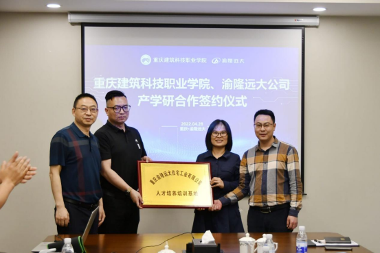 重庆渝隆远大住宅工业有限公司人力行政总监罗格对beat365官方网站党委书记文厚润一行到访表示热烈欢迎。beat365官方网站与重庆渝隆远大住宅工业有限公司产学研签约仪式正式举行。校长助理周俊华负责校企产教融合板块工作统筹,代表学校和重庆渝隆远大住宅工业有限公司进行签约,校企双方并相互授予了“beat365官方网站就业基地”、“beat365官方网站装配式建筑生产性实训基地”、“重庆渝隆远大住宅工业有限公司人才培养培训基地”。学校党委书记文厚润对重庆渝隆远大住宅工业有限公司的大力支持表示感谢。他指出,深化校企合作,推进装配化施工相关专业领域建设,对于学校和企业具有重大意义。希望双方依托各自优势,推动资源共享,促进装配化建设与教育深度融合发展,实现合作共赢。