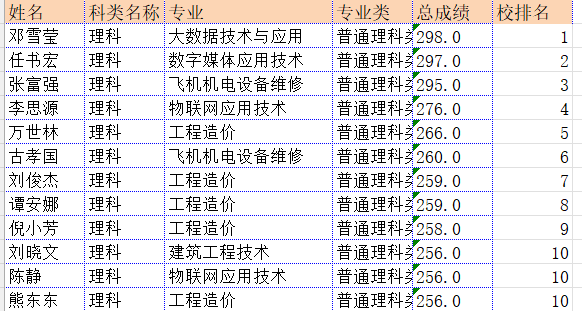 我院专升本成绩排名前十同学