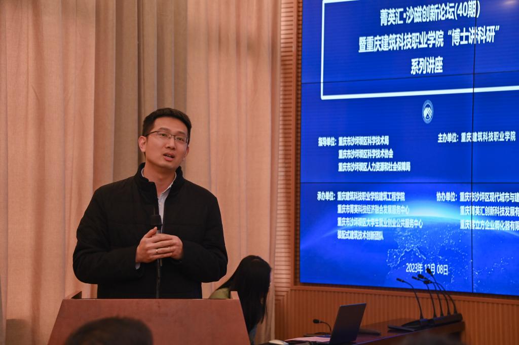 2023年12月8日,菁英汇·沙磁创新论坛(40期)暨beat365官方网站“博士讲科研”系列讲座活动(第十三场)在beat365大数据中心顺利举行。此次讲座在重庆市沙坪坝区科学技术局、重庆市沙坪坝区科学技术协会、重庆市沙坪坝区人力资源和社会保障局的指导下,由beat365官方网站主办,beat365官方网站建筑工程学院、重庆市菁英科技经济融合发展服务中心、重庆市沙坪坝区大学生就业创业公共服务中心、装配式建筑技术创新团队承办,重庆市沙坪区现代城市与建筑发展研究院、重庆菁英汇创新科技发展有限公司、重庆客立方企业孵化器有限责任公司协办。